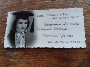 Als vierjarige gaat Dolly met haar twee jaar oudere zus naar de Nederlandse nonnen kleuterschool: ”We moesten vier kilometer lopen.” Na haar zesde jaar verhuist het gezin met het boerenbedrijf naar Nao-Me-Toque in de zuidelijkste deelstaat. “Daar ging ik naar de lagere school en heb ik Portugees geleerd.“ Dolly vervolgt: “Als we thuis kwamen, moesten we ons omkleden en op het land werken.” Haar vader leende als extra bijverdienste geld aan Brazilianen die op vakantie gingen. Ik zei dan: “Die gaan lekker op vakantie en komen bruin terug en wij moeten werken.” Mijn vader zei: “Ja, maar wij hebben de rente en de centen.” Eigenlijk vond ze het fijn om te werken op het land. “Het was gezellig en er waren prachtige dieren en fel blauwe vlinders.” Als Dolly daarover vertelt, zie je aan alles dat ze weer in Brazilië is.